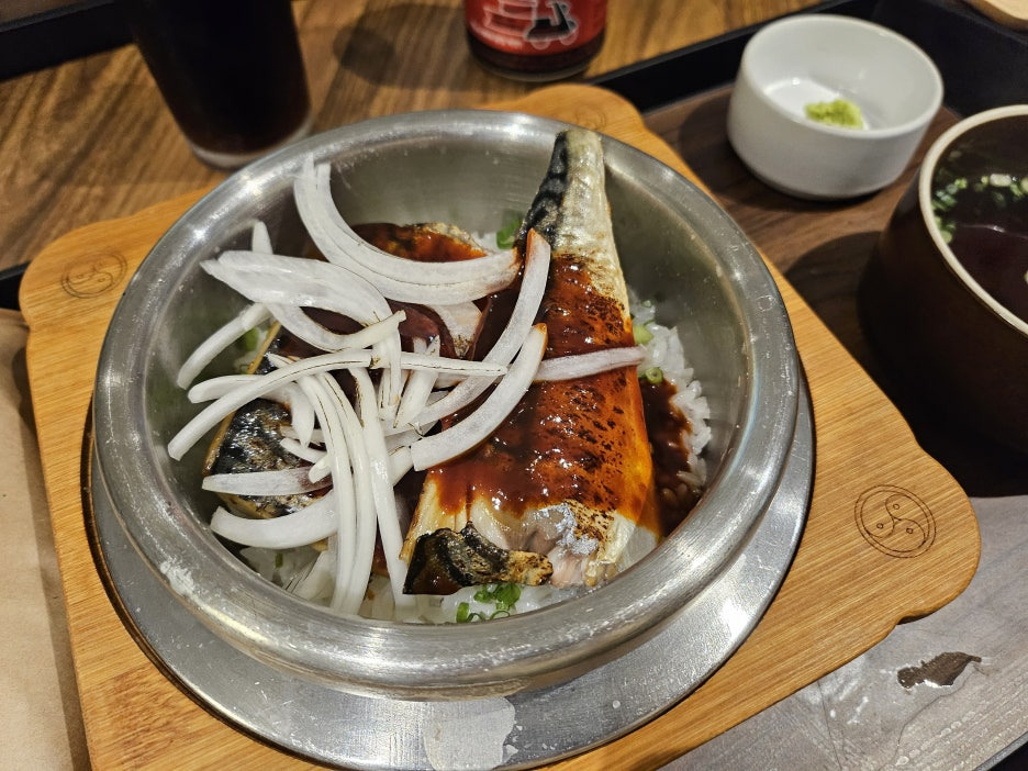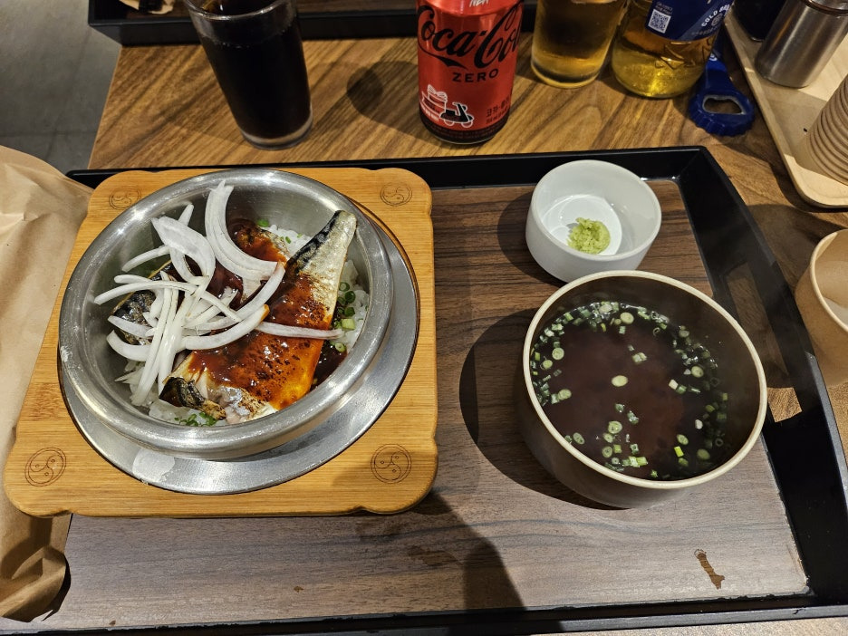 유명한 솥밥을 시켜줬어요 저는 매콤 고등어 솥밥 남편은 고등어소바로ㅋㅋㅋㅋ